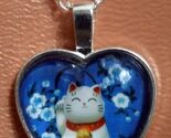 - Bolla a Forma di Cuore Ciondolo W/ Blu Retro Gatto Bianco,Fiori W/Catena Incluso