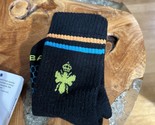Bombas women's socks in size XS featuring a black base with a green clover design and orange and blue stripes.