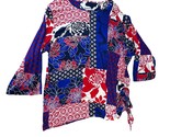 - BonWorth Shirt Womens XL Blue Red White Bell Sleeve Floral Patchwork Office Soft