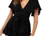 - Bonkwa Women Short Flare Sleeve Floral Print Summer Casual Romper V-Neck Size S
