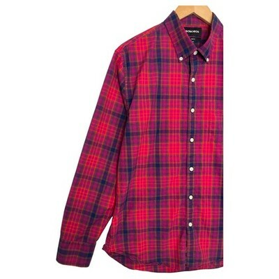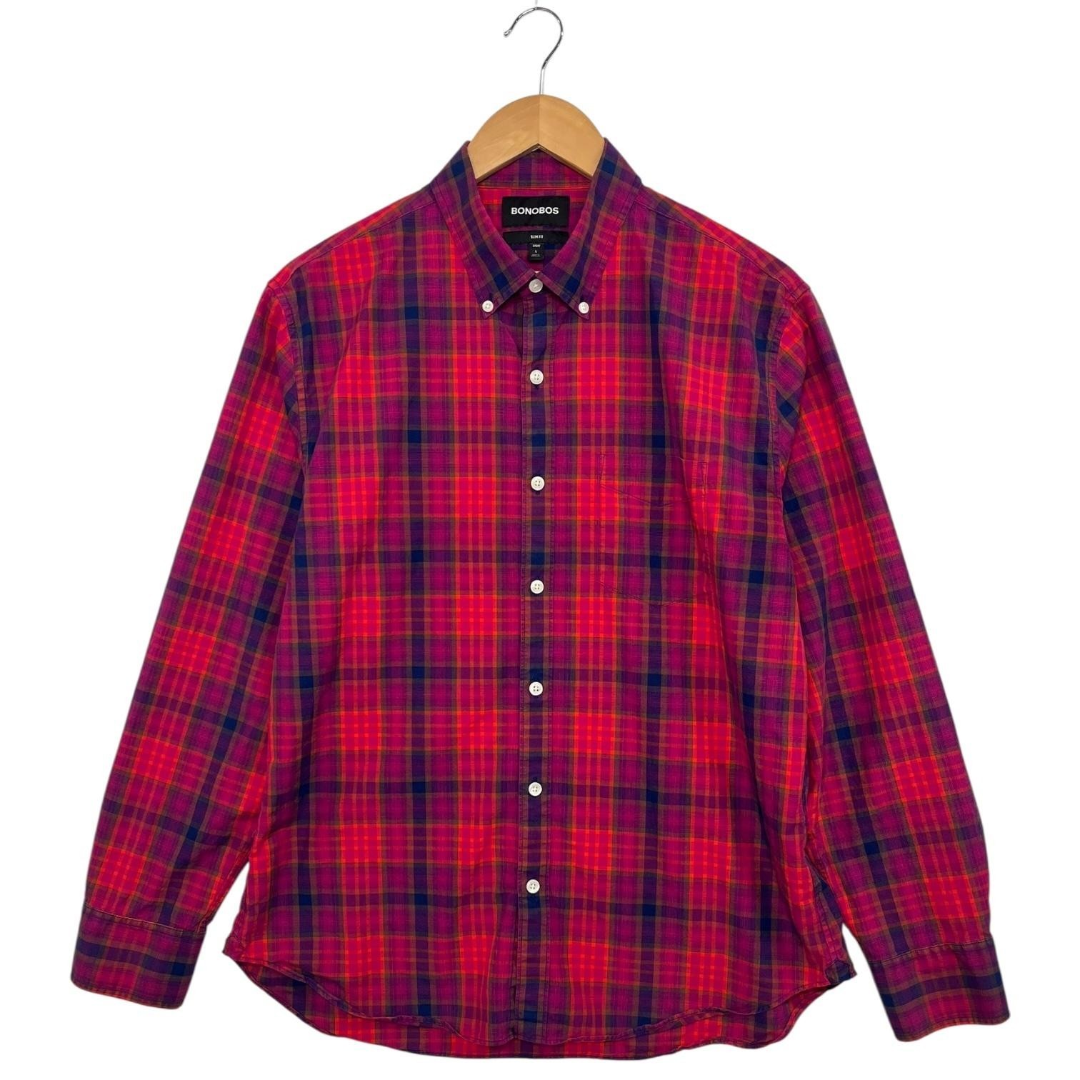 Bonobos Shirt Mens Large Red Purple Plaid Slim Fit Button Down Long Sleeve Cotton