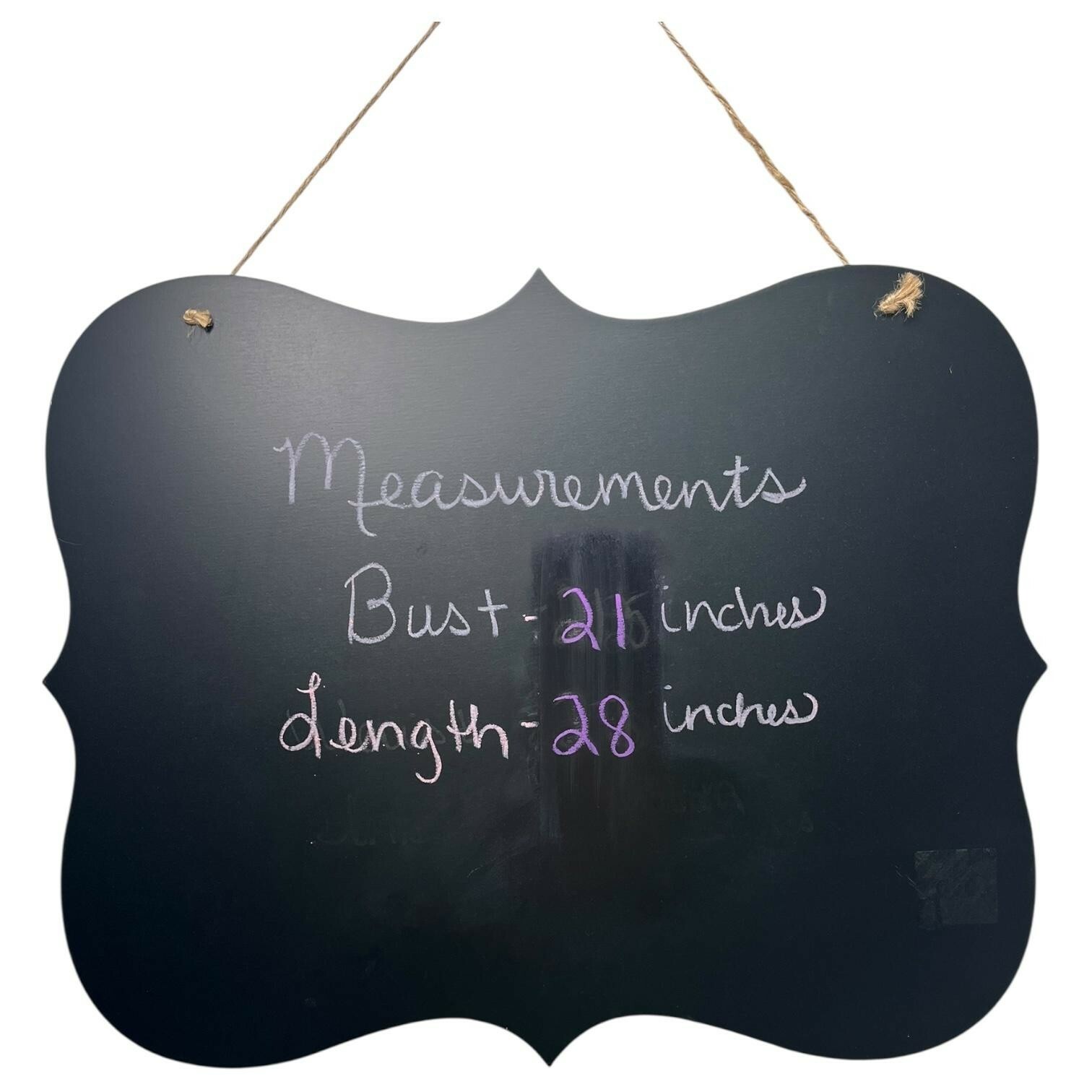Approximate flat measurements: Chest: 21 inches; Length (shoulder to hem): 28 inches
