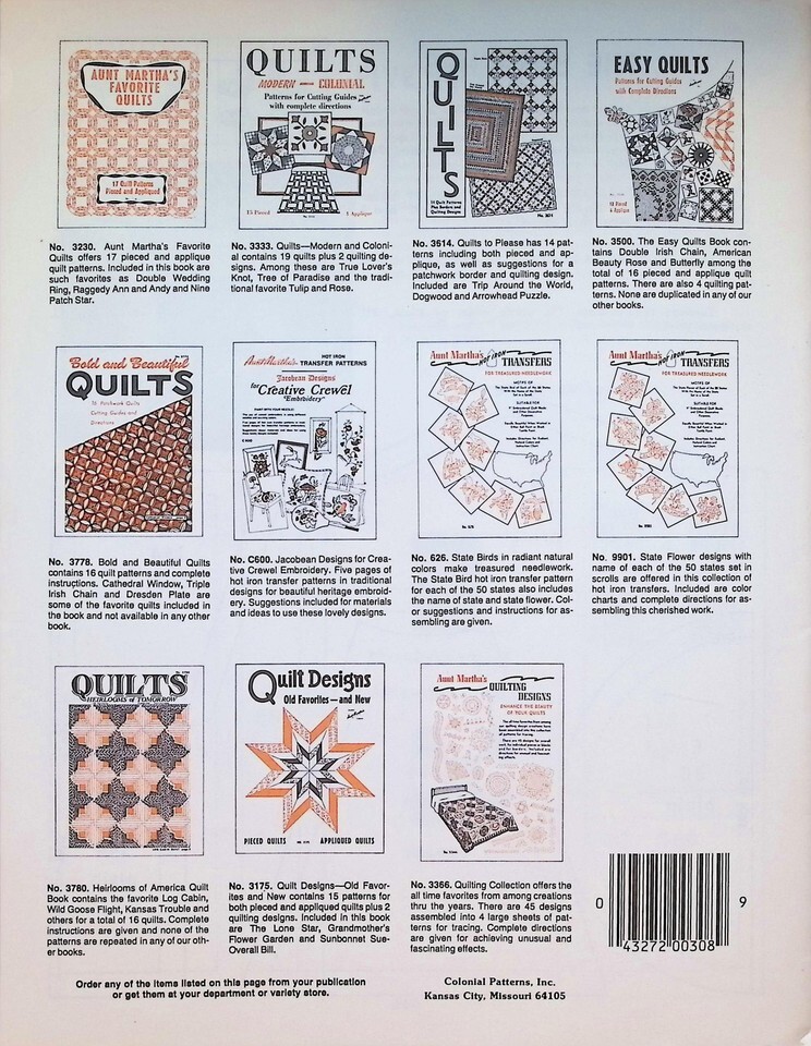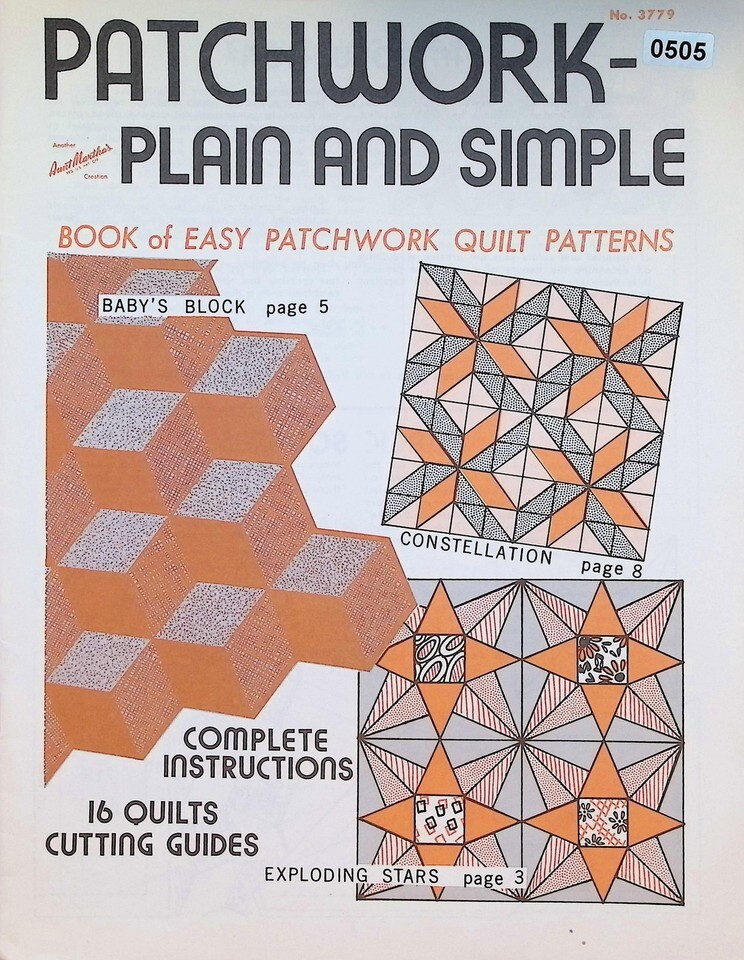 A beloved name in American home crafts, this vintage 'Aunt Martha's' pattern book captures the spirit of mid-century domestic arts. 'Patchwork - Plain and Simple' provides complete instructions and cutting guides for 16 classic quilt designs, including 'Exploding Stars' and 'Baby's Block.' A wonderful find for collectors of quilting ephemera and vintage sewing patterns, its simple, graphic style is a hallmark of the era. This booklet offers an authentic way to recreate heritage quilts with patterns that have been cherished for generations.
