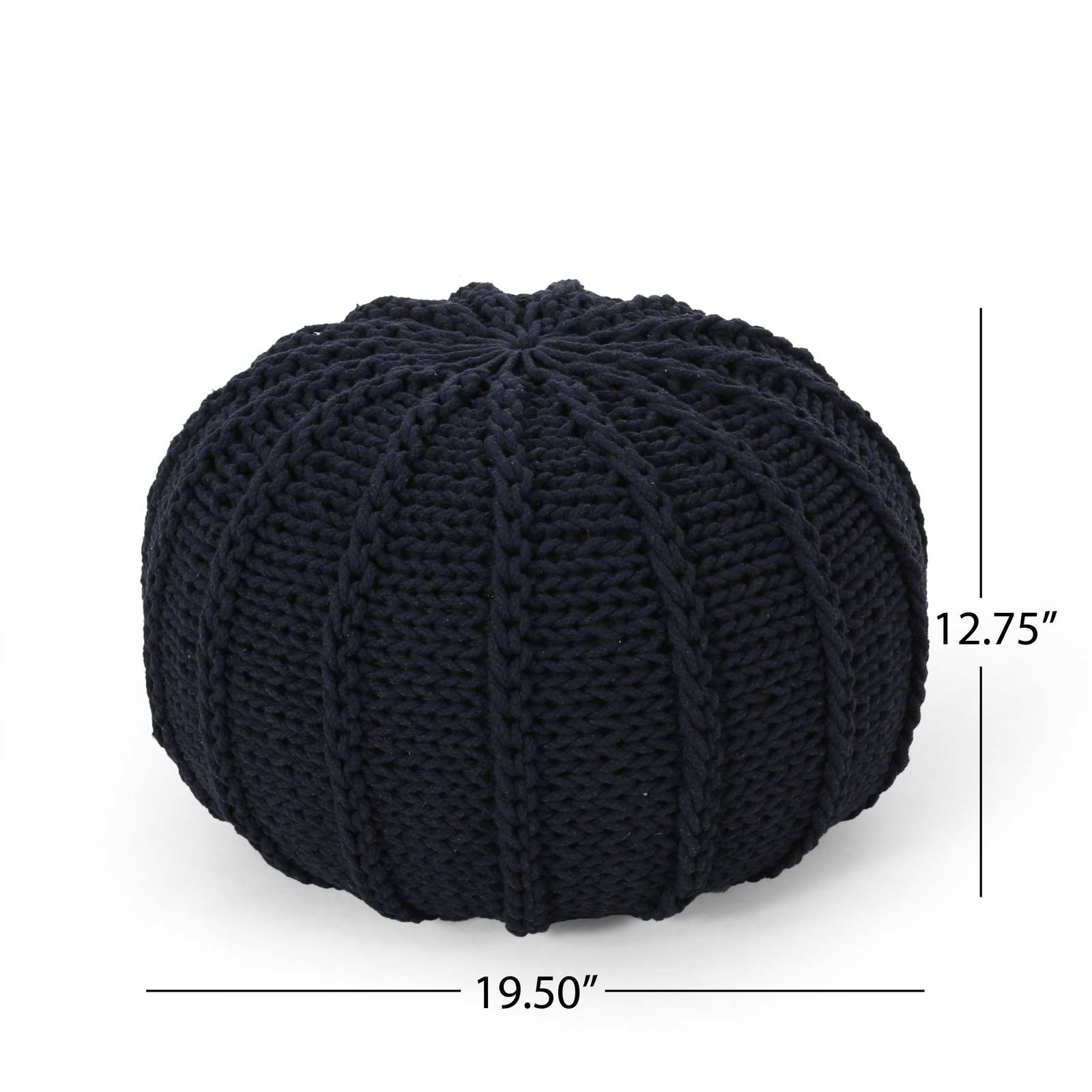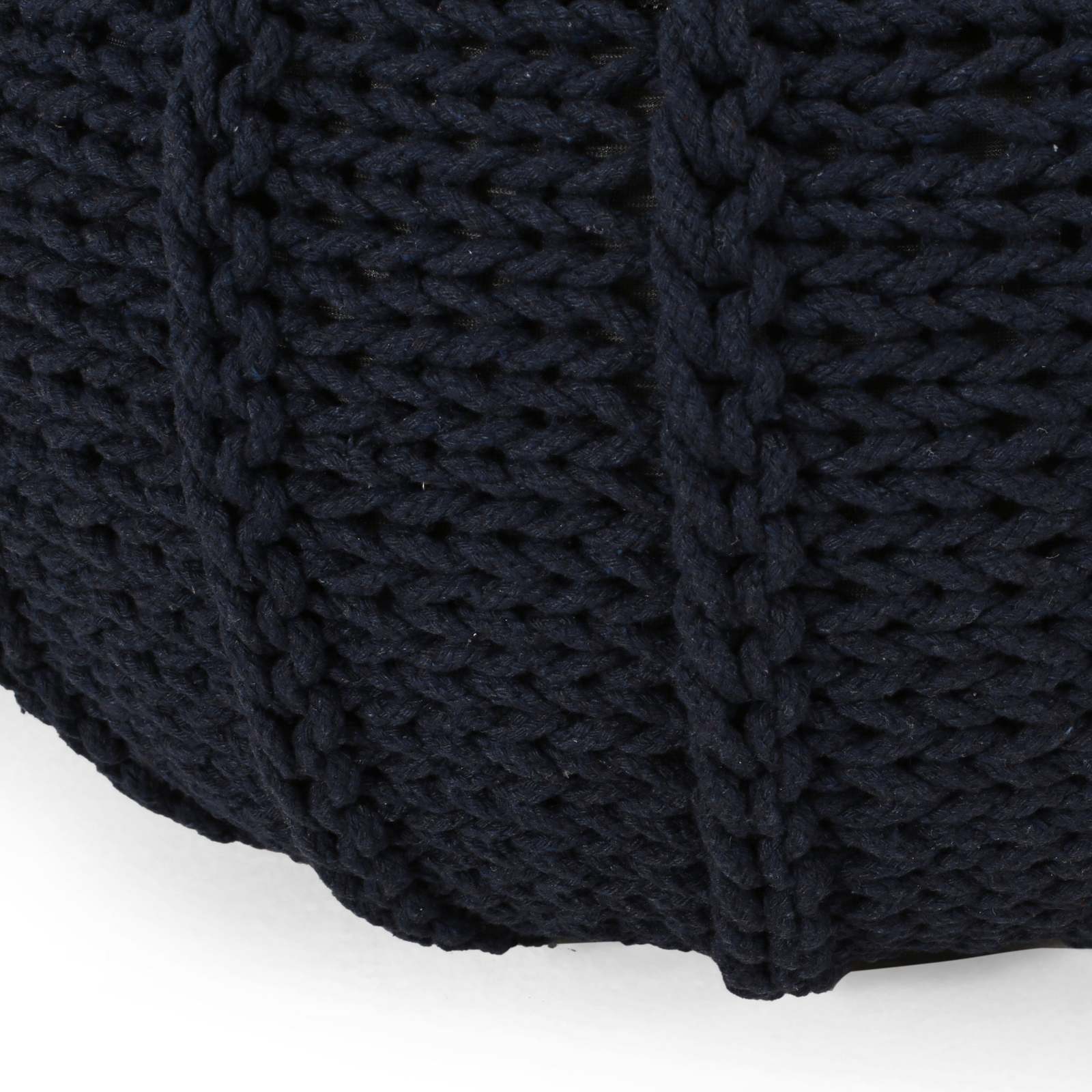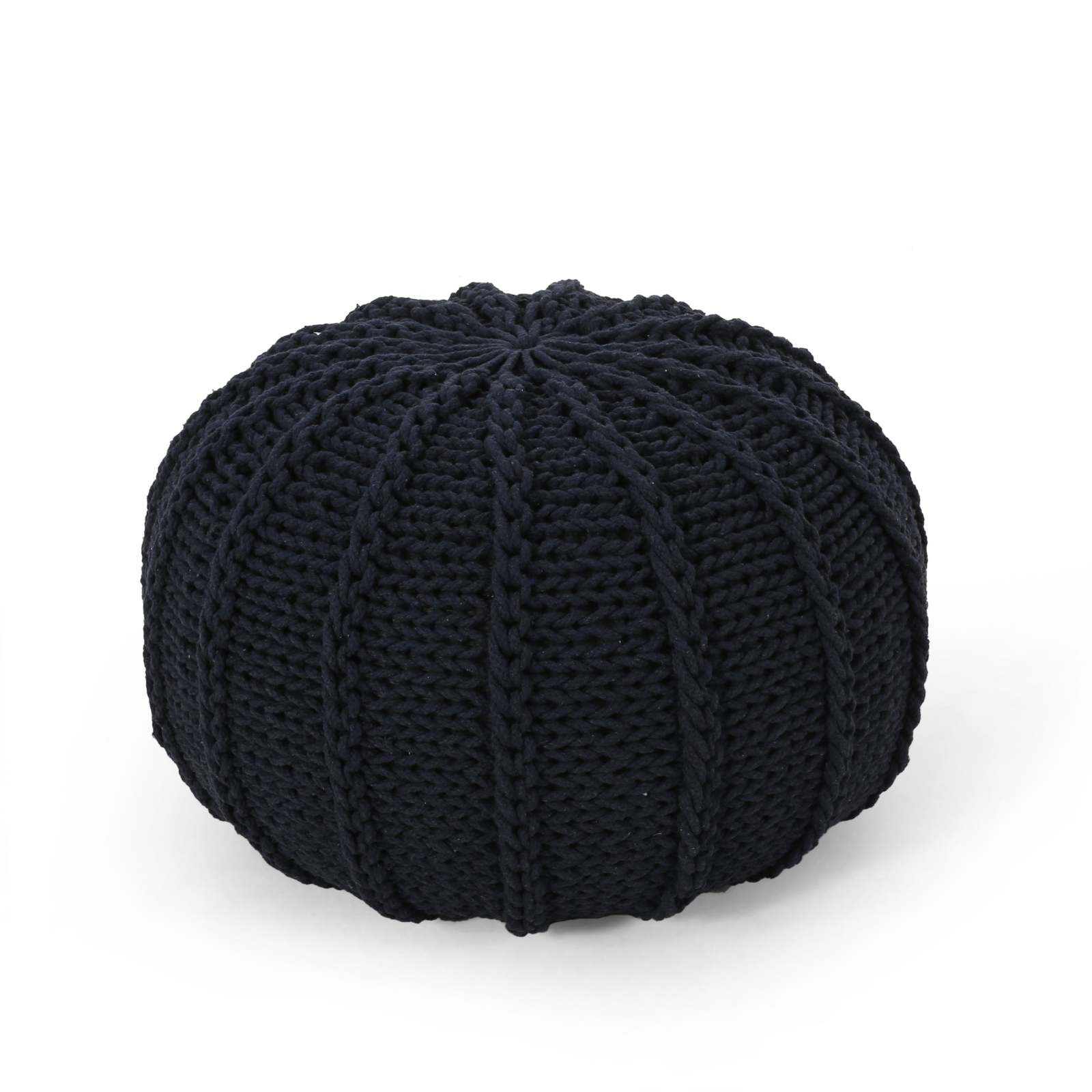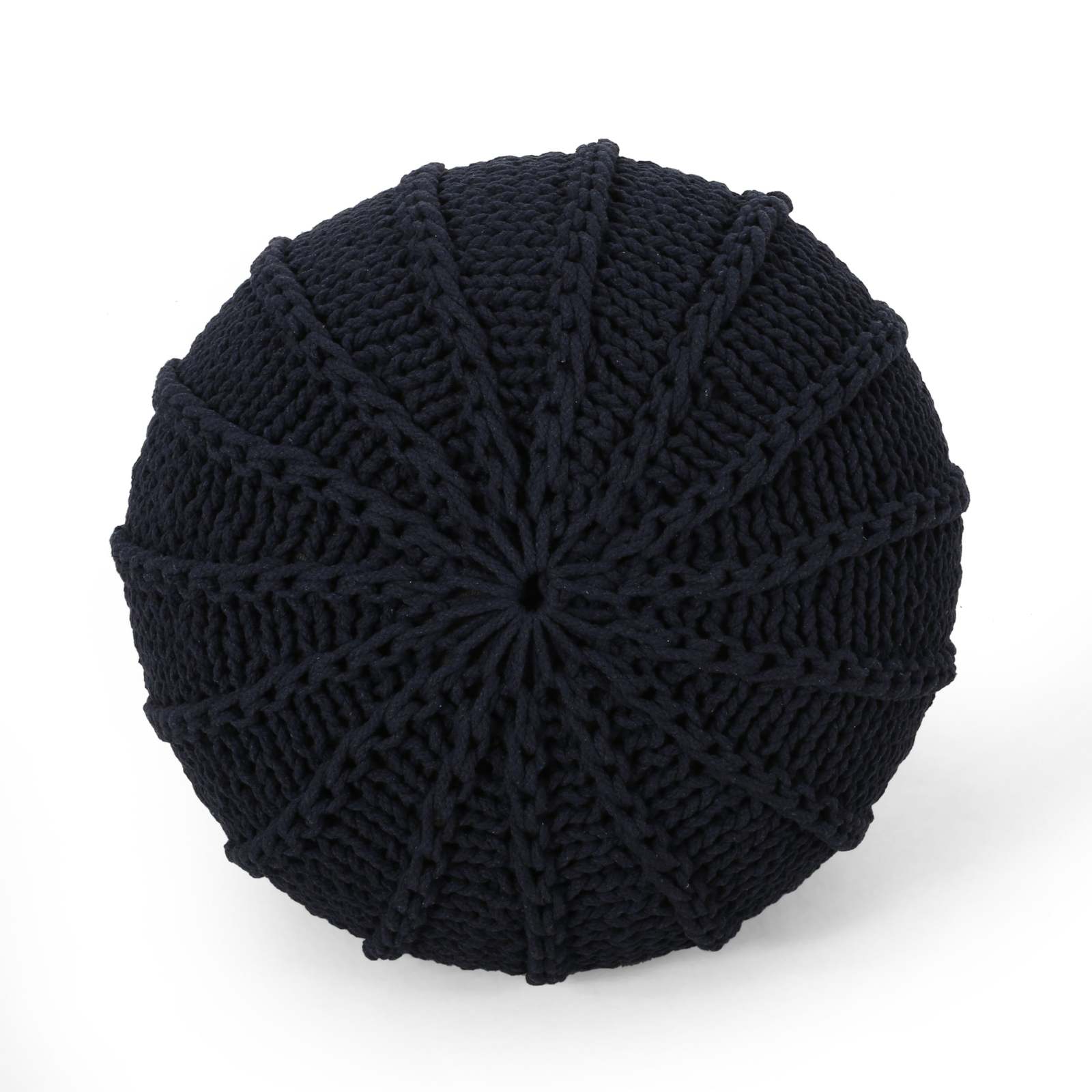 - Bordeaux Knitted Cotton Round Pouf Ottoman Floor Cushion Dark Blue 20"