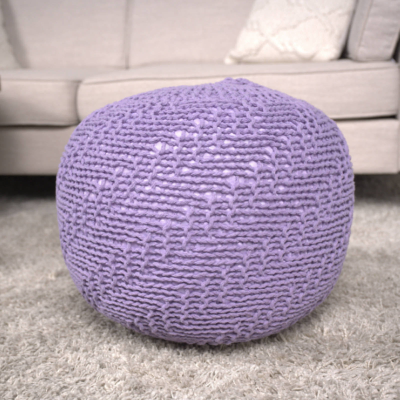 - Bordeaux Knitted Cotton Round Pouf Ottoman - Lavender 20x20x14