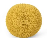 - Bordeaux Knitted Cotton Round Pouf - Versatile Yellow Ottoman/Floor Cushion