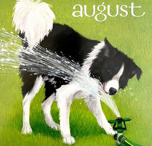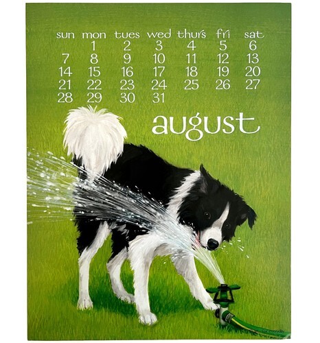 - Border Collie Sprinkler August Dog Days Poster Calendar 14 x 11" Art DWDDCal
