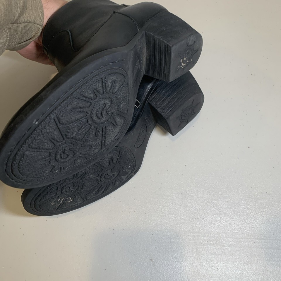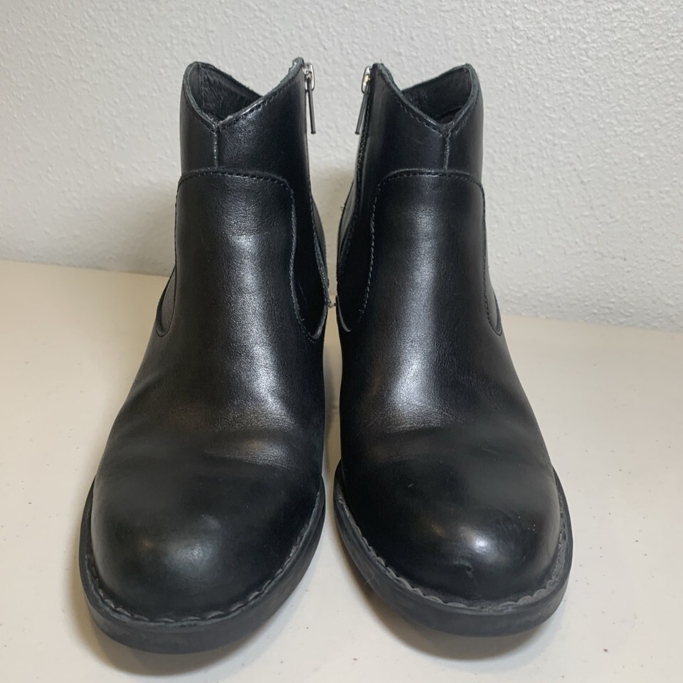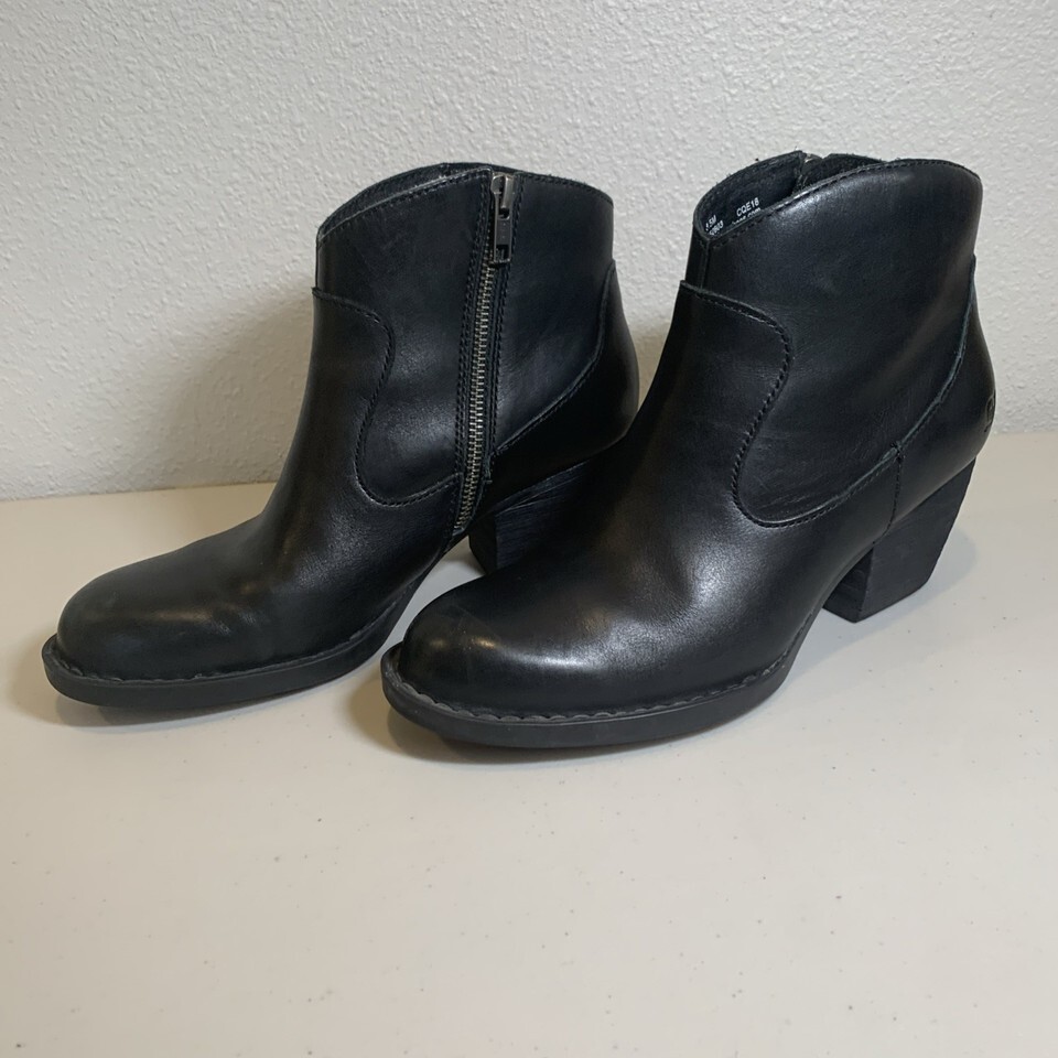 - Born Black Leather Ankle Boots 8.5M Side Zip Block Heel Booties F52603