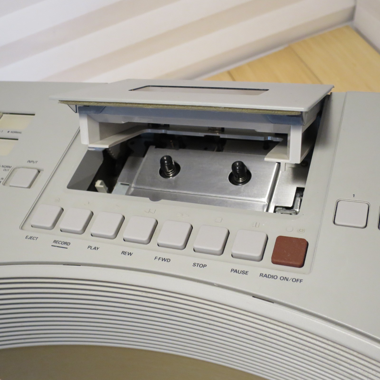 Everything functions, but the tape portion needs some work (not sure what's wrong, but you can hear it is slowed down warbly when playing). Honestly I thought the sound it made playing a tape of Mozart was kind of charming, or haunted, or both...