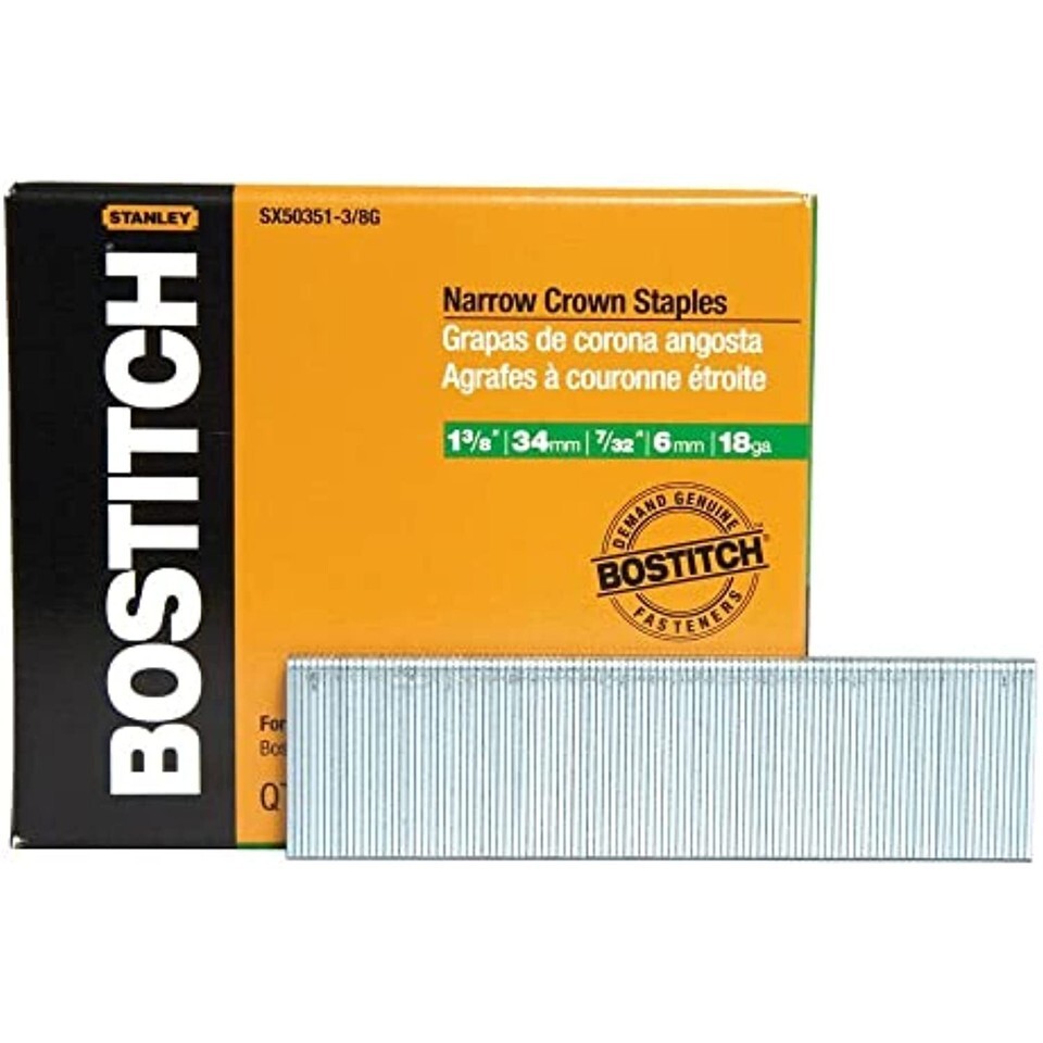 - Bostitch 3,000-Qty. 1-3/8 In. Leg 18-Gauge 7/32 In. Narrow Crown Finish Staples