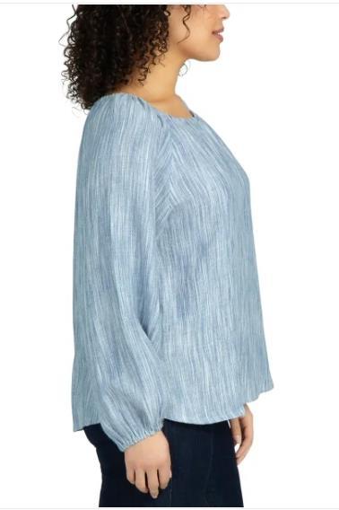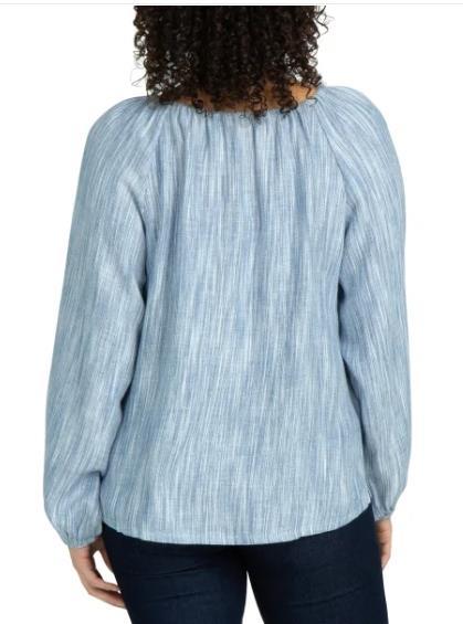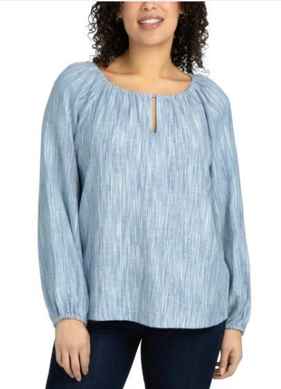 - Boston Traders Womens Blouse Blue Long Sleeves Relaxed Fit Side Slits Key Hole