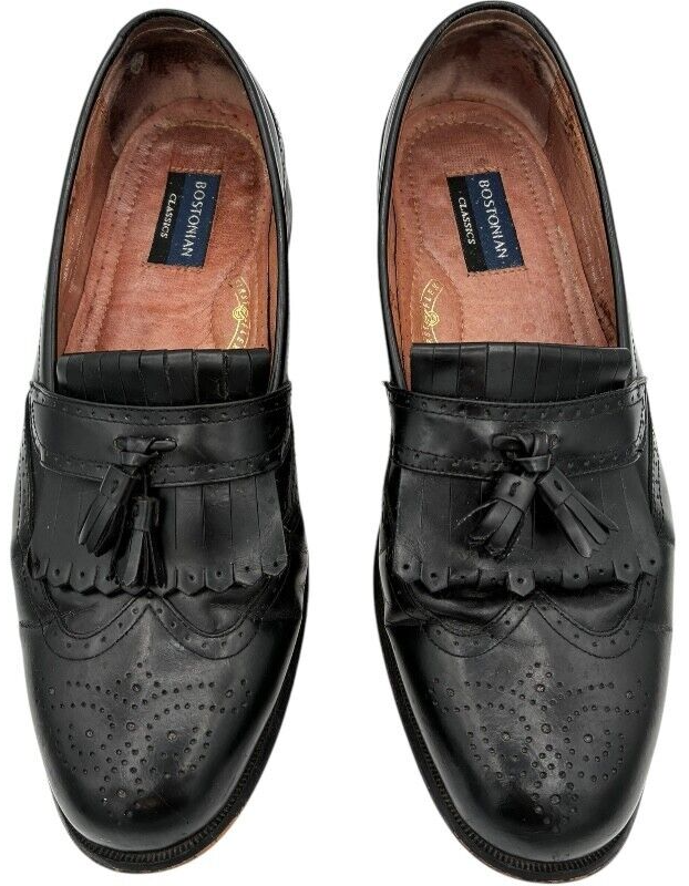 - Bostonian Classics 20370 First Flex Black Leather Tassel Wing Tip Loafer 12 M