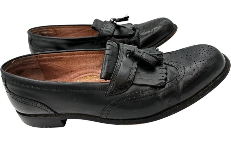 Bostonian Classics 20370 First Flex Black Leather Tassel Wing Tip Loafer 12 M