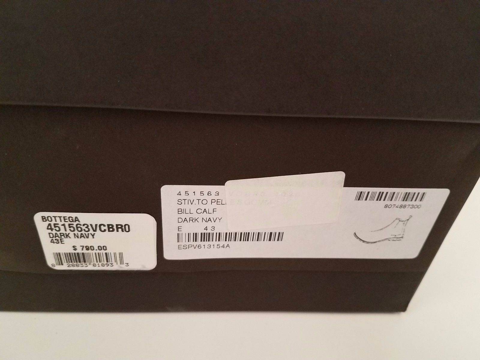 I am a small business owner just trying to make a living along with everyone else. I try to bring to you fine designer Men's items at good prices and for over 15 years I have been doing that. I have asked you to please NOT BID OR MAKE AN OFFER TO PURCHASE MY ITEM'S UNLESS YOU INTEND TO COMPLETE THE SALE!However you are still buying my item's and then not completing the sale or you try to refute the charge. To those who intend to do that I ask you to Please do not bid on my items unless you intend to complete the sale!Thank youBrand New in box with Bottega Veneta Dustbags Designed with comfort in mind in supple Navy Calf Leather.Stretch side inserts for easy on and offHoney colored rubber crepe soleMade in Italy