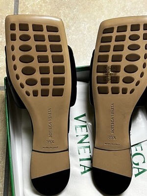 - Bottega Veneta Padded Lido Leather Flat Slide Sandals Sz EU 39.5US 9 Square Toe