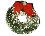 - Bottle Brush Flocked Snow 2.75" Vintage Christmas Wreath Ornament Red Velvet Bow