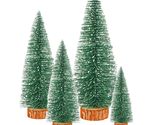 Bottle Brush Mini Christmas Trees Green 4pcs 4in with Snow Wooden Base