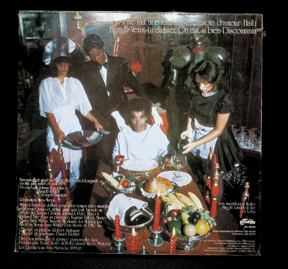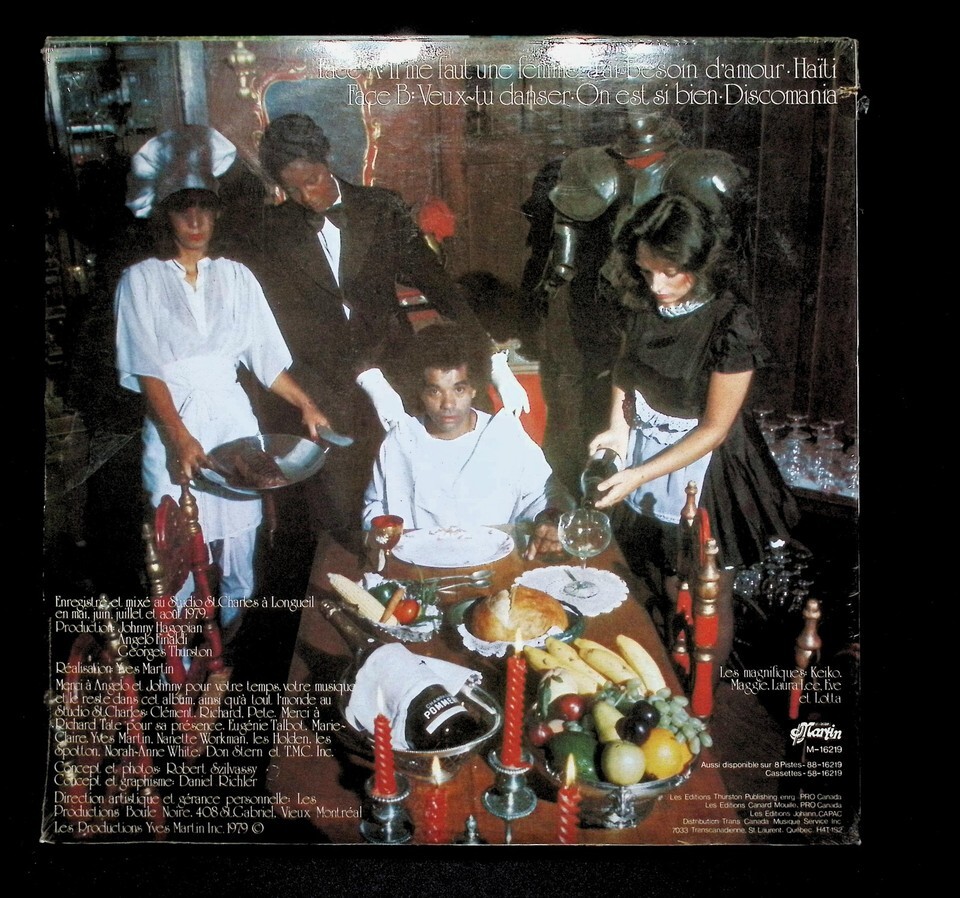 Boule Noire's 1979 album 'Il Me Faut Une Femme' on Les Disques Martin, catalog number M 16219. Pressed by London Records Of Canada. Recorded and mixed at Studio St Charles in Longueil. This Canadian release features the hit title track, along with 'J'Ai Besoin D'Amour' and 'Haïti'. Side B includes 'Veux-Tu Danser', 'On Est Si Bien', and 'Discomania'. All tracks are 100% Canadian Content (CanCon).