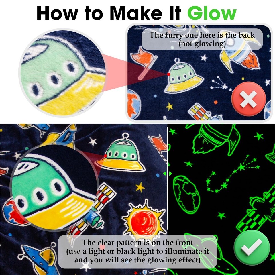 Multi-Purpose: The glow star planet blanket is brightly colored, with clear fonts and patterns, use for home, sofa, chair, bedroom, living room, car, office air conditioning environment, outdoor travelling camping office, sporting events, and more while reading, watching TV, or chatting.