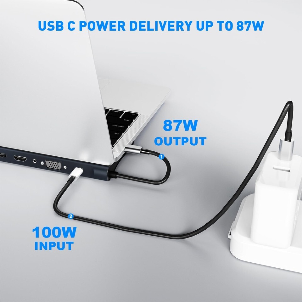 High Power Adapter The docking station 3 monitors with a 87W PD 3.0 powerful adapter which is enough to power all ports.