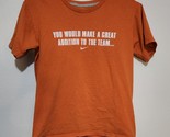 This product is a boy's Nike t-shirt in size medium. The t-shirt is orange in color and is designed specifically for boys. Made by Nike, a popular brand known for quality athletic clothing, this t-shirt is a stylish and comfortable addition to any boy's wardrobe. Perfect for casual wear or for showing off their favorite sports brand, this t-shirt is sure to be a favorite among young boys.