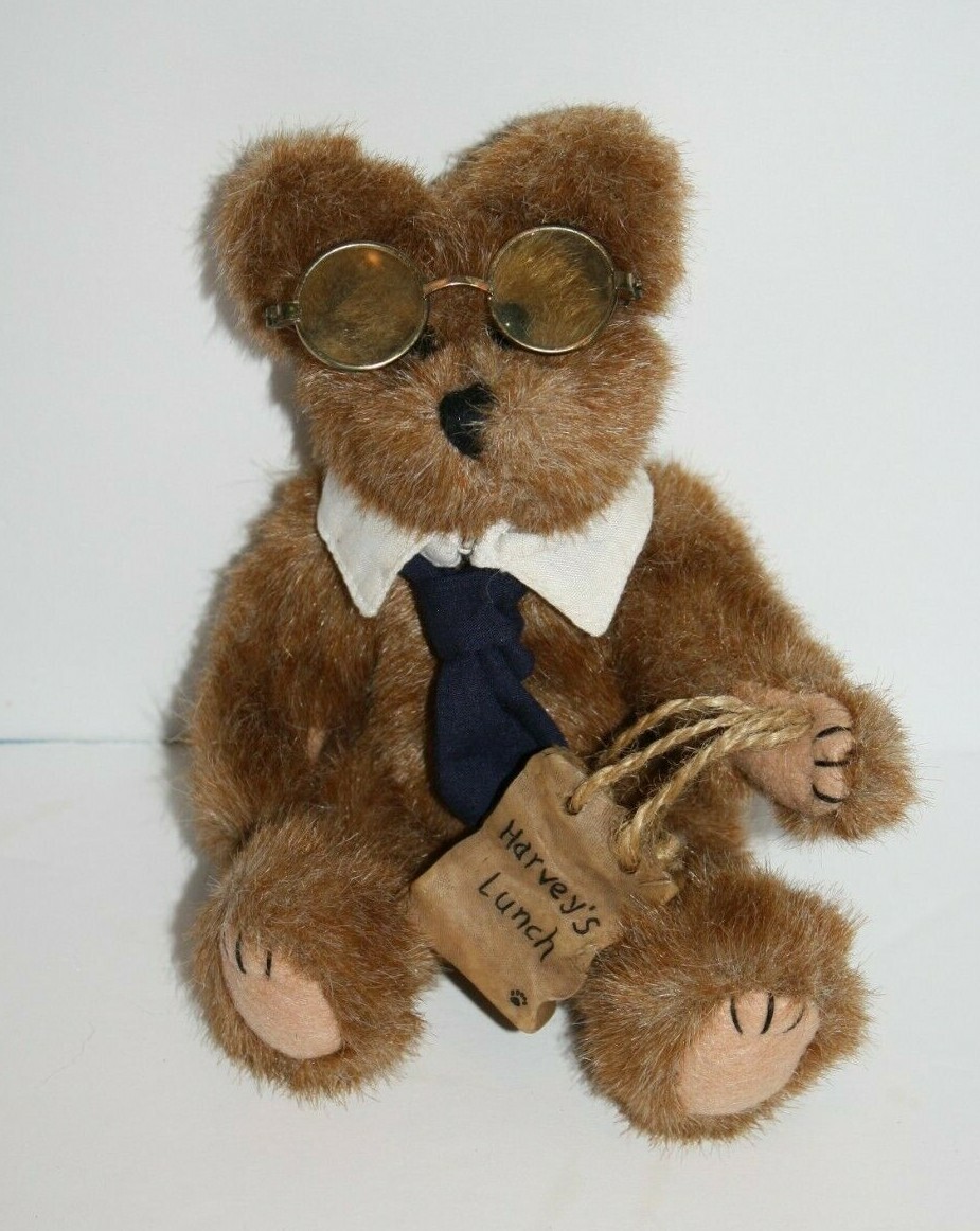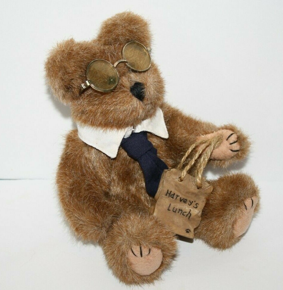 - Boyds Bears Harveys Lunch Bag Plush Teddy Bear 7" Wears Glasses Tie Stuffed