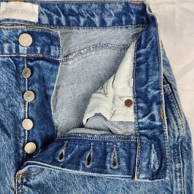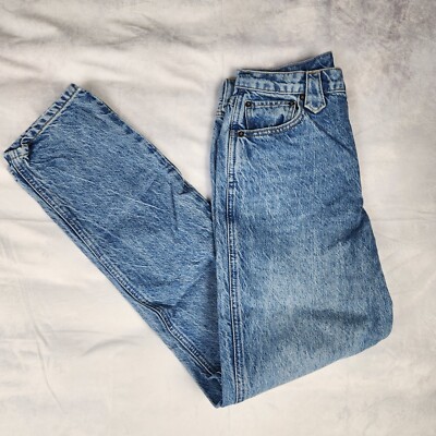 The Boyish Jeans Women's Size 26 The Clint Authentic Rigid High-Rise Straight Pants are a stylish and comfortable pair of jeans perfect for everyday wear. Made from a blend of spandex and cotton denim, these pants feature a high-rise waist with a button closure and a 31-inch inseam. The solid blue color and straight fit make them versatile for various occasions, from casual to more dressed-up. With features like easy care, comfort, stretch, and pockets, these jeans are both practical and fashionable, ideal for the modern woman on the go.