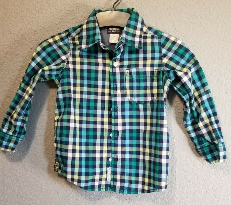 BOYS OSHKOSH SIZE 4 CHECK BLUE/GREEN/WHITE BUTTON DOWN SHIRT. Condition is Pre-owned. Shipped with USPS First Class Package.