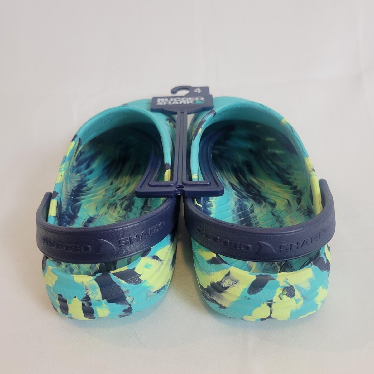 - Boys Size 4 Rugged Shark Eva Clog Slip On Shoes NWOT Comfort Blue Teal Swirl