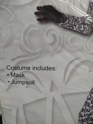 ADDITIONAL INFO: NEW IN PACKAGE. Longer loose threads here and there. Mask is smashed from being folded in package. May have wrinkles or creases. Also May need to be filled with a lightweight stuffing to maintain shape. Economical Costume. Would be good base costume to customize. SOLD AS IS