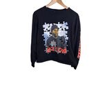 A black long-sleeve shirt featuring Ice Cube from the classic movie Boyz N The Hood. This shirt boasts a captivating graphic of Ice Cube integrated into a puzzle piece design on the front. A prominent Boyz N The Hood logo runs down the left sleeve in bold red and white lettering. It has a classic crew neckline, long sleeves, and a straight hem.