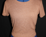 - Bozzolo Crop Top Tee T-Shirt Crew Neck Short Sleeve Ribbed Brown Large L