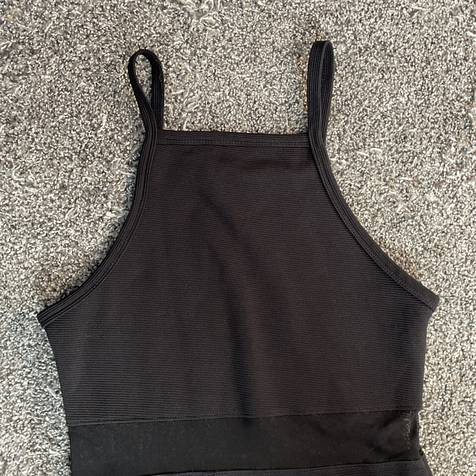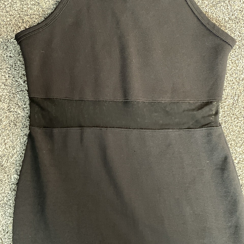 - Bozzolo Ribbed Bodycon Tank Top Sheer Midriff Black Dress (S) Small Women