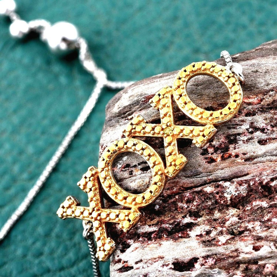 Crafted from high-quality sterling silver, it boasts a charming "Hugs and Kisses" design with the letters XOXO.