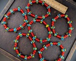 Le bracelet ancien perles chevron c?ur blanc rouge canneberge venitienne de 8 mm presente un style de perles d'inspiration africaine avec une pierre principale en verre rouge. Le bracelet est concu avec des accents en metal bronze et convient aux hommes et aux femmes. Originaire de Republique tcheque, ce bracelet presente un melange unique d'artisanat traditionnel et de design moderne, ce qui en fait un ajout distinctif a toute collection de bijoux.