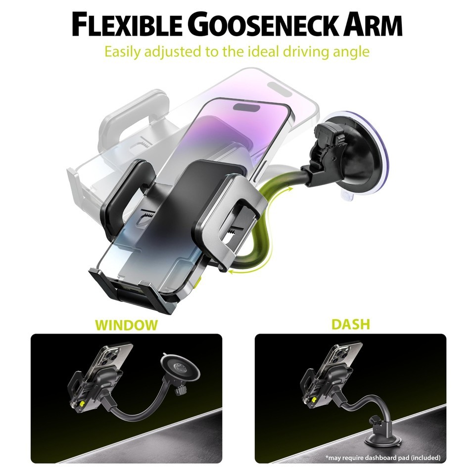 EASY INSTALLATION: Getting a strong hold with this car phone mount is simple. Press the base lever down to create suction when attaching the mount to the windshield or window. To remove dirt and dust on the base, just wash the suction cup with warm soapy water and air-dry.