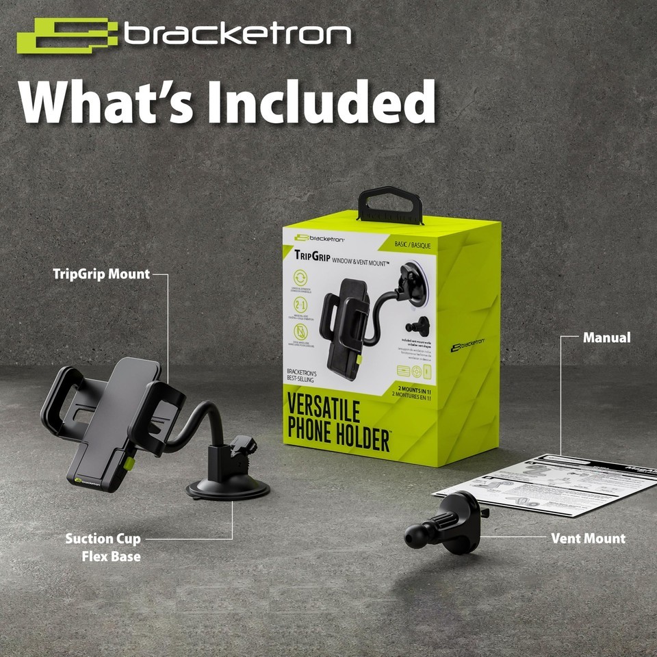 - Bracketron TripGrip Window & Vent Mount GPS Car Holder with Vent Clip Black