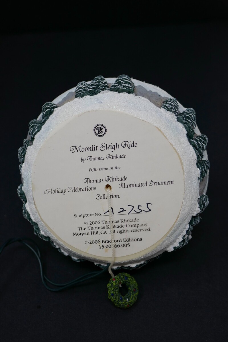 - Bradford Editions 2006 Thomas Kinkade Moonlit Sleigh Ride Animated Ornament