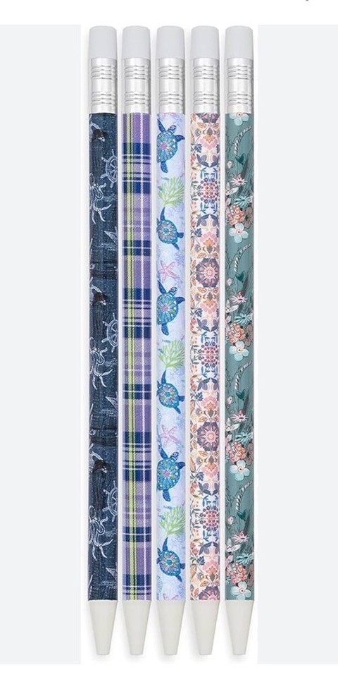Cute pencils are featured in an assortment of multicolored Vera Bradley patterns from the Spring 2023 collection