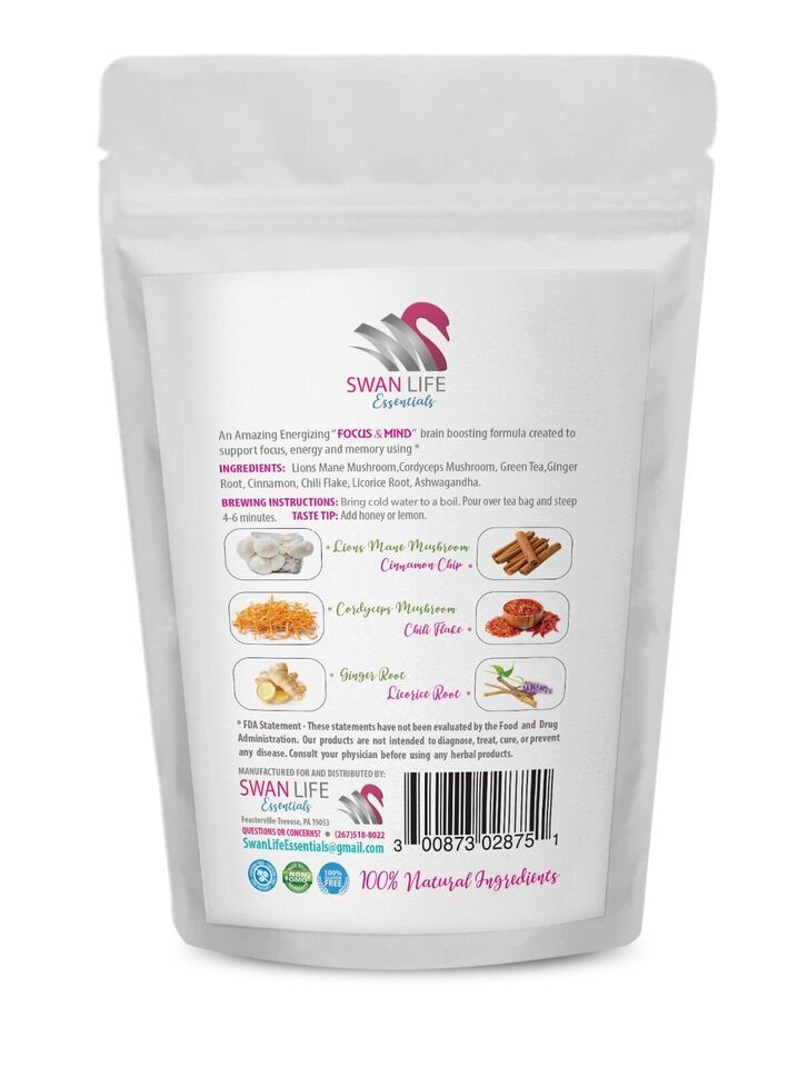 OUR FOCUS AND MIND HERBAL TEA: Our tea is made with premium-quality natural ingredients (Lions Mane Mushroom, Cordyceps Mushroom, Green Tea, Ginger Root, Cinnamon, Chili Flake, Licorice Root, Ashwagandha), and exudes the distinct flavor and aroma.