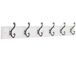 The Liberty Hardware 27" Hook Rail is perfect for any hanging needs. The size along with the six hooks allows you to easily hang a variety of items without taking up too much space. Ideal for apartments or small spaces. Available in white with a satin nickel finish. Measurements are 3.02"L x 28.75"W x 5.5"H.