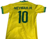 The product is a Brasil Futbol Soccer CBF Men's Jersey in yellow color with a leopard print design, featuring Neymar Jr. branding. It is officially licensed by Nike and represents the Brazilian national soccer team. This jersey is designed for men in size M and is a must-have for fans of Brazil's soccer team. The vibrant yellow color and unique leopard print design make it a stylish and eye-catching choice for any soccer enthusiast.