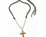 - Brass Baroque Scroll Style Cross on Crystal and Black Leather Tie Necklace