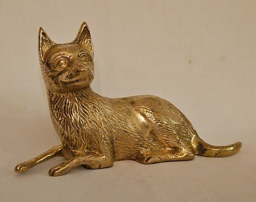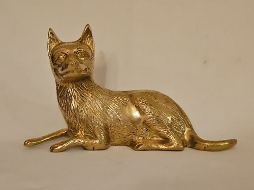 - Brass Dog Figurine German Shepherd Sculpture Vintage Paperweight Decorative