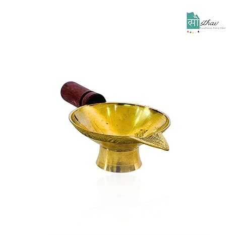 - Brass Kapoor Aarti Diya with Wooden Handle