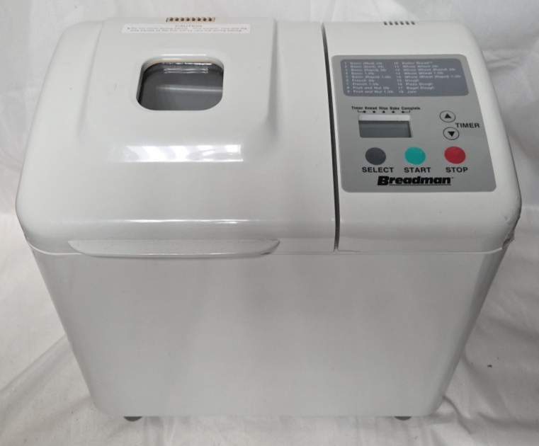 The Breadman TR560 Bread Machine is a white plastic bread machine with dimensions of 10 inches in depth, 13.5 inches in height, and 13.5 inches in width. It has a voltage of 110V and a power of 500W, making it suitable for making homemade bread with ease. This Breadman bread machine is designed to automatically bake bread with its convenient features, perfect for those who enjoy baking homemade loaves in the comfort of their own kitchen.