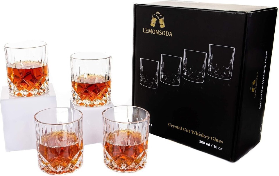 Break Resistant Crystal Cut Whiskey Tumblers - Perfect Gift Box for Spirits
