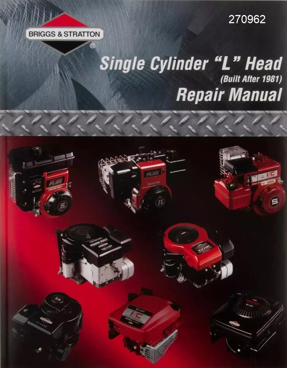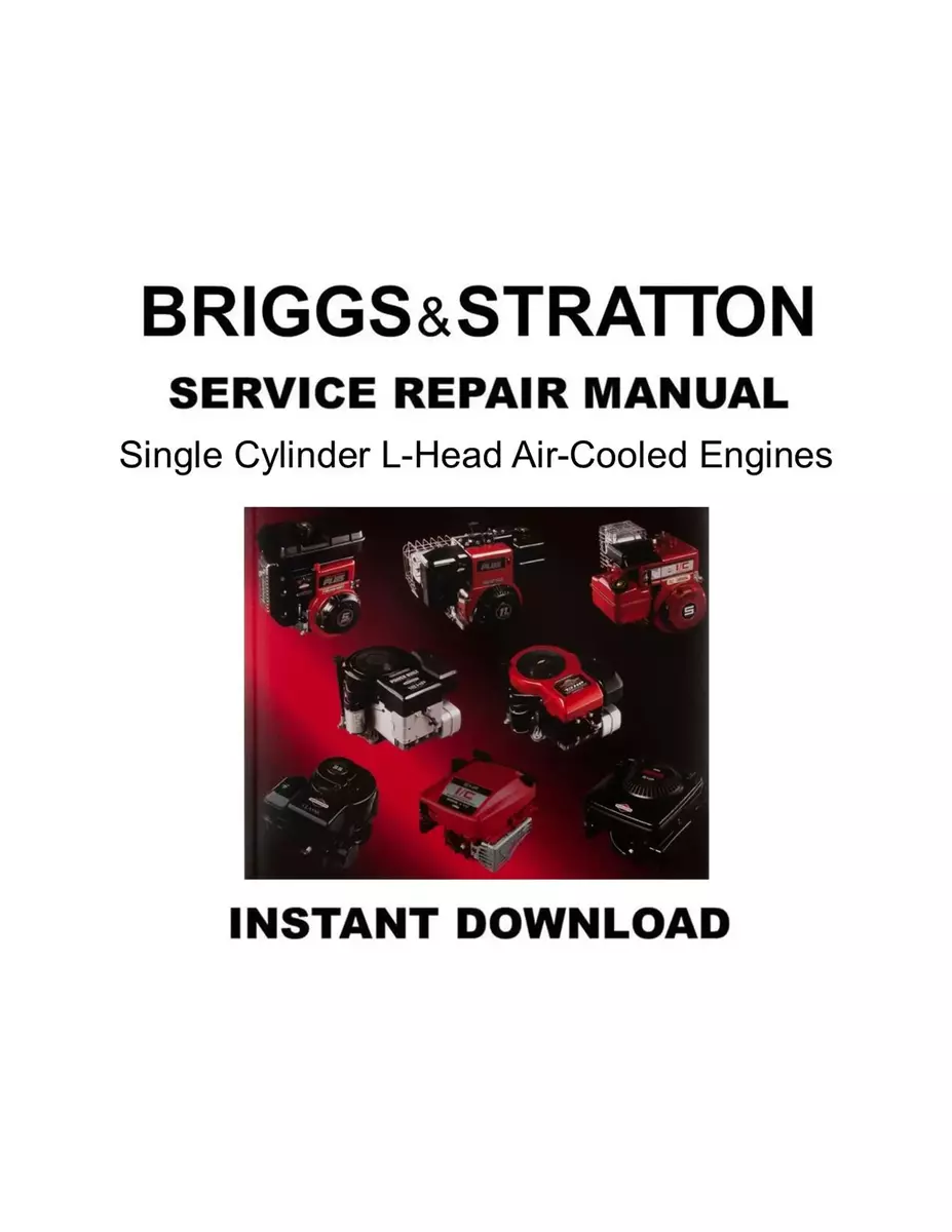 This service repair manual is for the Briggs Stratton Single Cylinder L-Head Air-Cooled Engines Service Repair Workshop Manual 270962