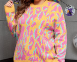 - Bright Pink Plus Size Leopard Ribbed Trim Sweater