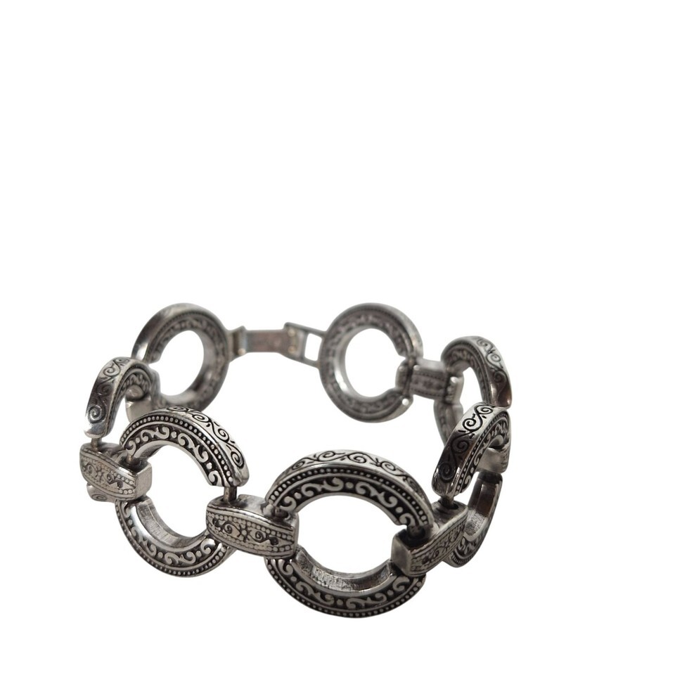 - Brighton Bracelet Vintage Ornate Silver Tone Link Statement Cuff Scrollwork